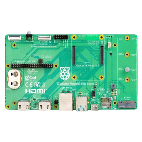 The Raspberry Pi Compute Module 5 IO Board is a carrier board designed to evaluate, develop, and integrate the Compute Module 5 in embedded systems. It provides standard interfaces including HDMI, USB, Ethernet, PCIe, and camera and display connections. The board is engineered for stable operation and full compatibility with Compute Module 5 variants. Its layout supports reliable power delivery and signal integrity during development and testing. Suitable for prototyping, system validation, and embedded hardware development.