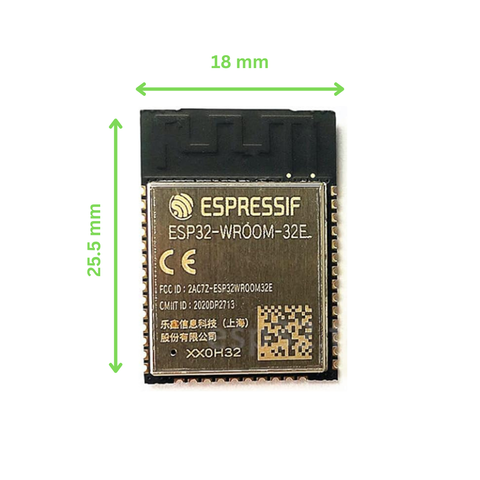 The Espressif ESP32-WROOM-32E is a wireless MCU module based on the ESP32 dual-core processor, integrating Wi-Fi and Bluetooth connectivity for embedded systems. It includes on-module SPI flash memory and an integrated PCB antenna for compact designs. The module operates at 3.3 V and supports a wide range of digital and analog interfaces. It is compatible with Arduino IDE, ESP-IDF, and MicroPython. Typical applications include IoT devices, industrial controllers, smart sensors, and wireless embedded products.