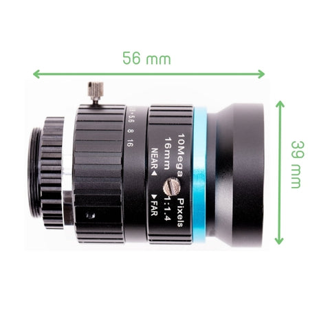The 16mm 10MP Telephoto Lens is designed for use with the Raspberry Pi High Quality Camera for long-range imaging applications. It provides a narrow field of view suitable for capturing distant subjects with improved detail. The lens is optimized for stable optical performance and supports consistent image quality with the HQ Camera sensor. It is commonly used in surveillance systems, monitoring setups, and fixed-position imaging projects. A thumbscrew is included for secure and straightforward mounting onto the HQ Camera board.