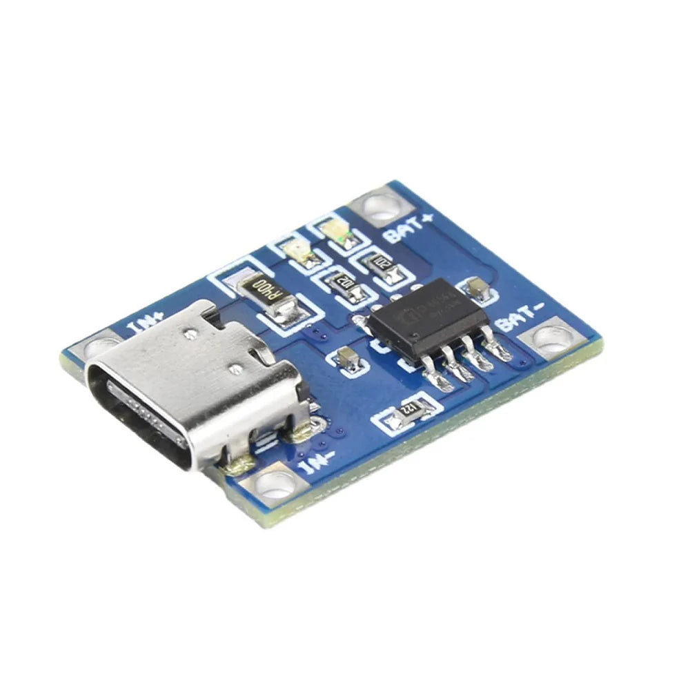 The TP4056 Type-C USB Charging Module is a linear charger designed for 1-cell 3.7V lithium batteries using constant-current/constant-voltage (CC/CV) charging. It features a USB-C input, onboard charging status LEDs, and battery protection circuitry (optional based on module version).