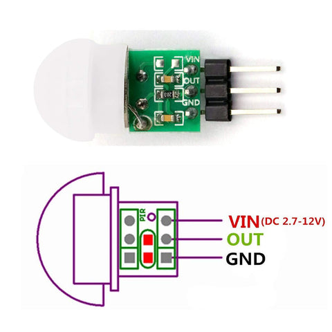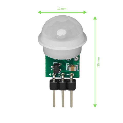 The AM312 Mini PIR Motion Sensor is a compact passive infrared sensor designed to detect motion within a 3–5 meter range and a 100-degree cone angle. Operating at DC 2.7–12V with static power consumption below 0.1mA, it features a 2-second delay and repeatable trigger mode. The sensor is compatible with a wide range of electronic projects and microcontroller platforms, offering reliable performance in temperatures from -20 °C to +60 °C. Its small PCB (10 mm × 8 mm) and miniature lens facilitate easy integration into space-constrained designs.