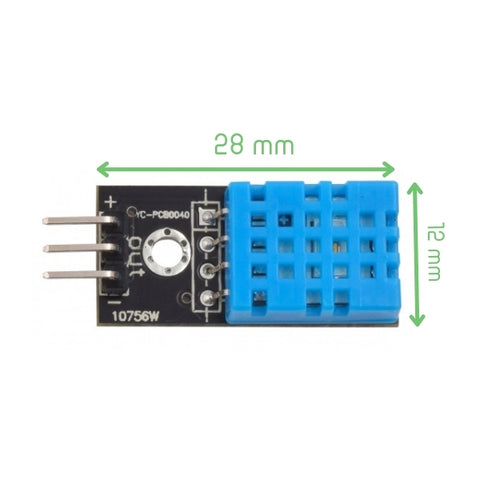 The DHT11 is a low-cost digital temperature and humidity sensor designed for basic environmental monitoring applications. It integrates a capacitive humidity sensor and a thermistor to provide calibrated digital output through a single data pin. Operating at 5 V, it eliminates the need for analog inputs and simplifies system integration. The sensor updates readings every 2 seconds, ensuring stable and reliable measurements for non-time-critical applications. It is well suited for educational projects, microcontroller experiments, and simple weather monitoring systems.