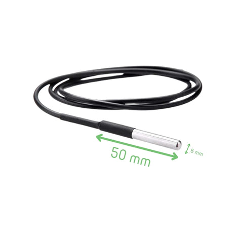 The DS18B20 is a digital temperature sensor designed for accurate temperature measurement using a 1-Wire communication interface. It supports 9-bit to 12-bit resolution and operates over a wide temperature range from -55 °C to +125 °C. The sensor features a stainless steel waterproof probe with a 100 cm cable, enabling reliable operation in humid or liquid environments. With a unique 64-bit serial code and optional parasite power mode, it allows multiple sensors to be connected on a single data line. It is suitable for embedded systems, industrial monitoring, and environmental sensing applications.