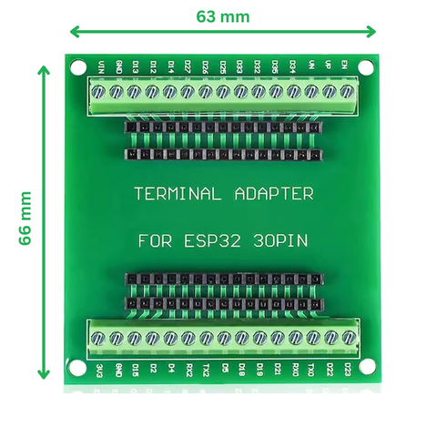 The DOIT ESP32 DevKit Screw Terminal Expansion Board is an interface board designed to simplify wiring and signal access for ESP32 DevKit development boards. It converts the standard pin headers into screw terminals for secure and repeatable connections. The board supports 3.3 V logic levels and provides full access to GPIO, power, and communication pins. It is suitable for prototyping, testing, and semi-permanent installations. Typical applications include control panels, industrial prototypes, and educational development setups.