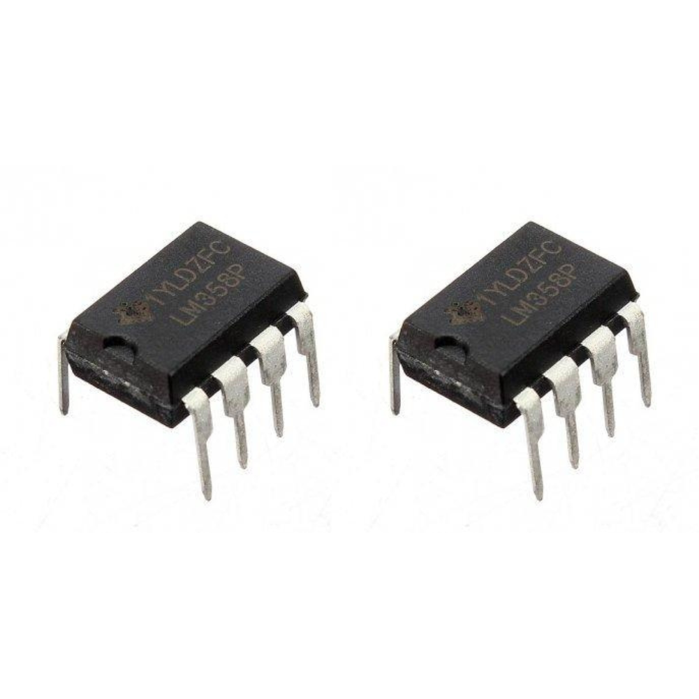 The LM358 is a dual operational amplifier IC designed for low power analog signal processing.