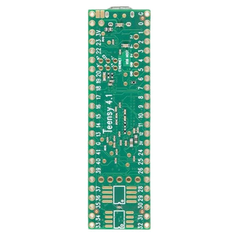 The PJRC Teensy 4.1 is a high-performance development board designed for advanced embedded systems and real-time applications. It features the NXP iMXRT1062 ARM Cortex-M7 processor running at 600 MHz, expanded flash memory, and optional external memory support, while offering enhanced I/O including Ethernet PHY, SD card socket, and USB host capability. The board supports dynamic clock scaling without affecting serial communication, timing functions, or data streaming performance, and provides a shutdown feature with RTC backup when powered by a coin cell. With its compact 2.4 × 0.7 in form factor, pre-soldered headers, and stable operation, Teensy 4.1 is suitable for high-speed data processing, control systems, and educational or industrial prototyping.